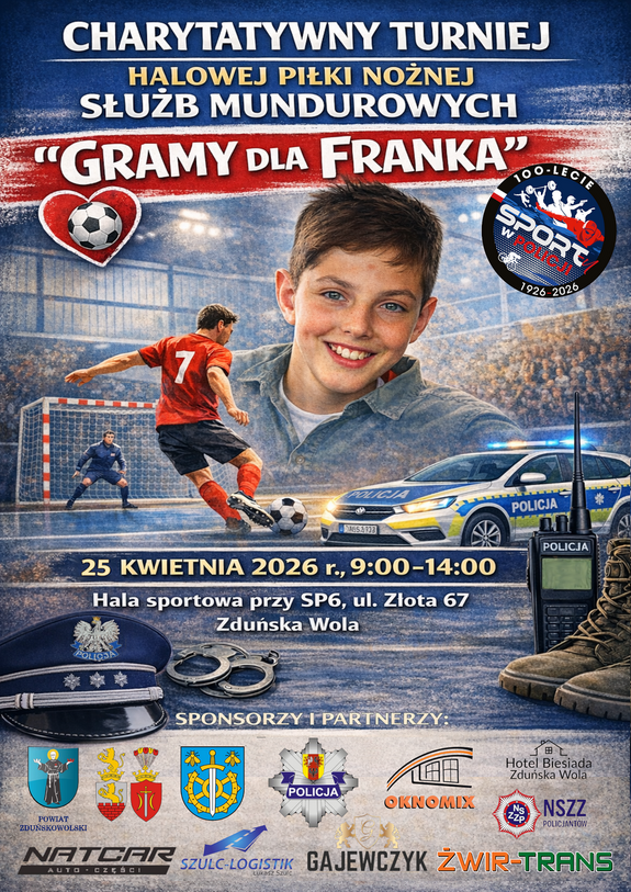 Organizujemy charytatywną imprezę sportową by zebrać pieniądze na specjalistyczne badanie głowy 12-letniego Franka, syna policjantki ze zduńskowolskiej komendy. To badanie musi być przeprowadzane w specjalistycznej klinice w Niemczech. Pomoże ono zdiagnozować i powstrzymać codziennie ataki padaczki chłopca. To padaczka lekooporna odebrała chłopcu umiejętność mówienia i wyhamowała jego rozwój intelektualny.