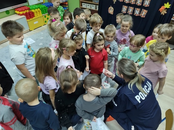4 listopada 2025 roku, policjantka z Komendy Powiatowej Policji w Zduńskiej Woli, odwiedziła przedszkolaków z oddziału przedszkolnego przy Szkole Podstawowej w Krobanowie.