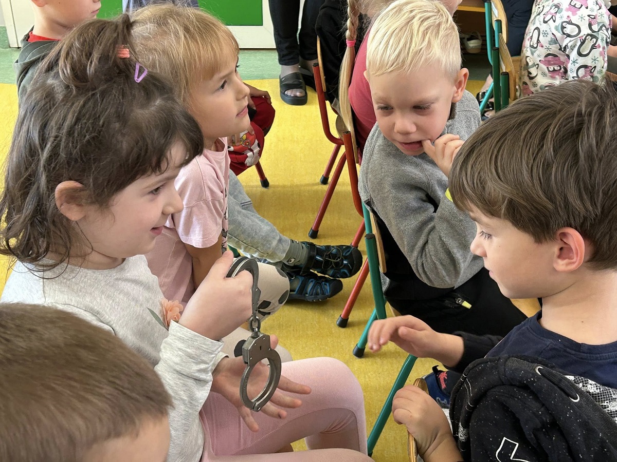 Dzielnicowi rozmawiali z dziećmi o bezpiecznych zachowaniach na drogach, przypominali jak prawidłowo przechodzić przez jezdnię, jak zachować się, gdy zaczepi nas obca osoba. Przypominali również o korzyści noszenia ubrań i obuwia posiadającego elementy odblaskowe. Największym jednak zainteresowaniem cieszyły się wśród maluchów opowiadania o codziennej pracy Policji. Przedszkolaki od gości dostały zawieszki odblaskowe, a dzielnicowi piękną laurkę z podziękowaniami. Dzięki takim spotkaniom dzieci nie będą obawiały się spotkania z funkcjonariuszem. Policjant będzie kojarzył się przedszkolakom jako osoba, której nie należy się bać i do której zawsze i w każdej sytuacji można zwrócić się o pomoc. Takie spotkania upływające w miłej atmosferze, z całą pewnością budują zaufanie do munduru od najmłodszych lat.