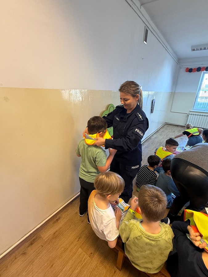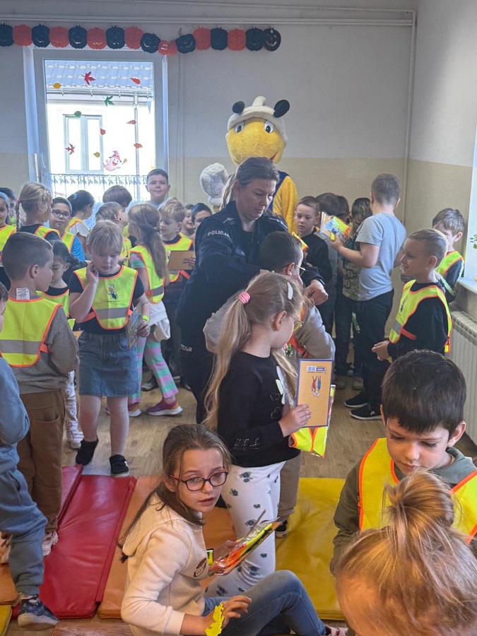 W ramach akcji „Świeć przykładem – noś odblaski”, policjantka wspólnie z przedstawicielami marketu budowlanego „Mrówka”, odwiedziła dzieci z klas pierwszych ze zduńskowolskiej „dwójki”. Podczas spotkania najmłodsi uczniowie poznali podstawowe zasady ruchu drogowego oraz bezpieczeństwa w życiu codziennym.