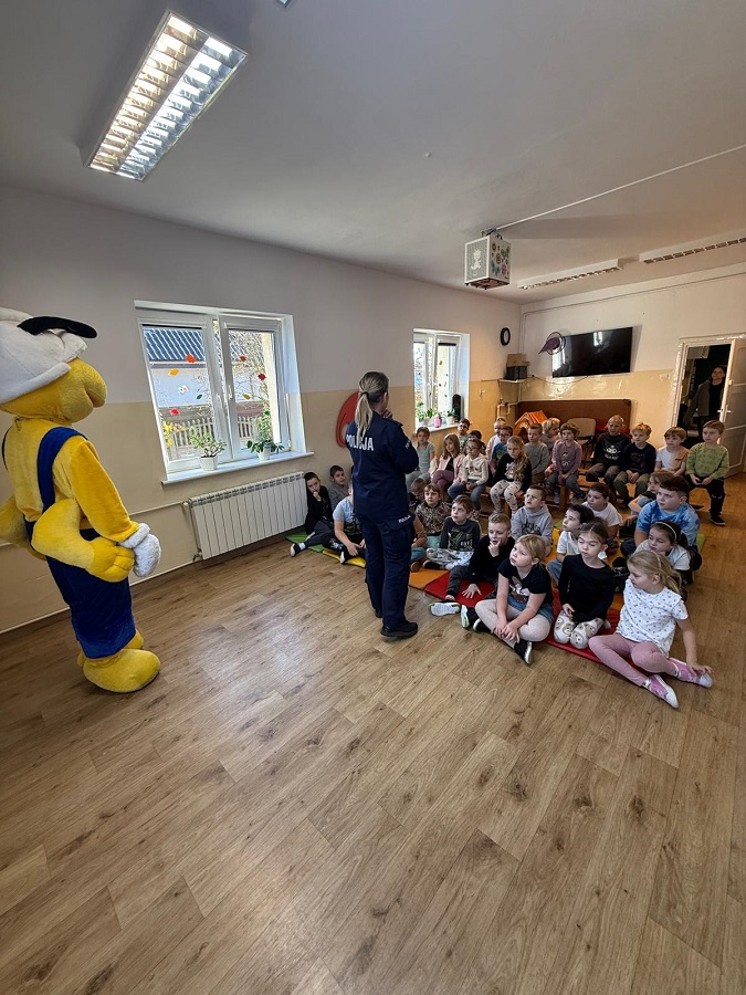 Profilaktyk z Komendy Powiatowej Policji w Zduńskiej Woli, w ramach akcji „Świeć przykładem – noś odblaski”, odwiedziła dzieci z klas pierwszych ze Szkoły Podstawowej nr 2 w Zduńskiej Woli. Spotkanie odbyło się przy współpracy ze zduńskowolskim marketem Mrówka. Mundurowa uczyła dzieci jak właściwie zachować się w pobliżu drogi w czasie pieszej wędrówki do szkoły i do domu oraz jak poprawnie przekraczać jezdnie. Policjantka zwracała szczególną uwagę na noszenie elementów odblaskowych, które niejednokrotnie ratują życie niechronionym uczestnikom ruchu drogowego. Podczas spotkania nie zabrakło informacji o bezpieczeństwie w domu, podczas zabaw na świeżym powietrzu oraz jak zachować się w sytuacji napotkania niebezpiecznego psa czy osoby obcej. Każde dziecko otrzymało elementy odblaskowe w postaci kamizelek i breloczków, malowanki o tematyce bezpieczeństwa w ruchu drogowym, które zostały ufundowane przez „Mrówkę”.