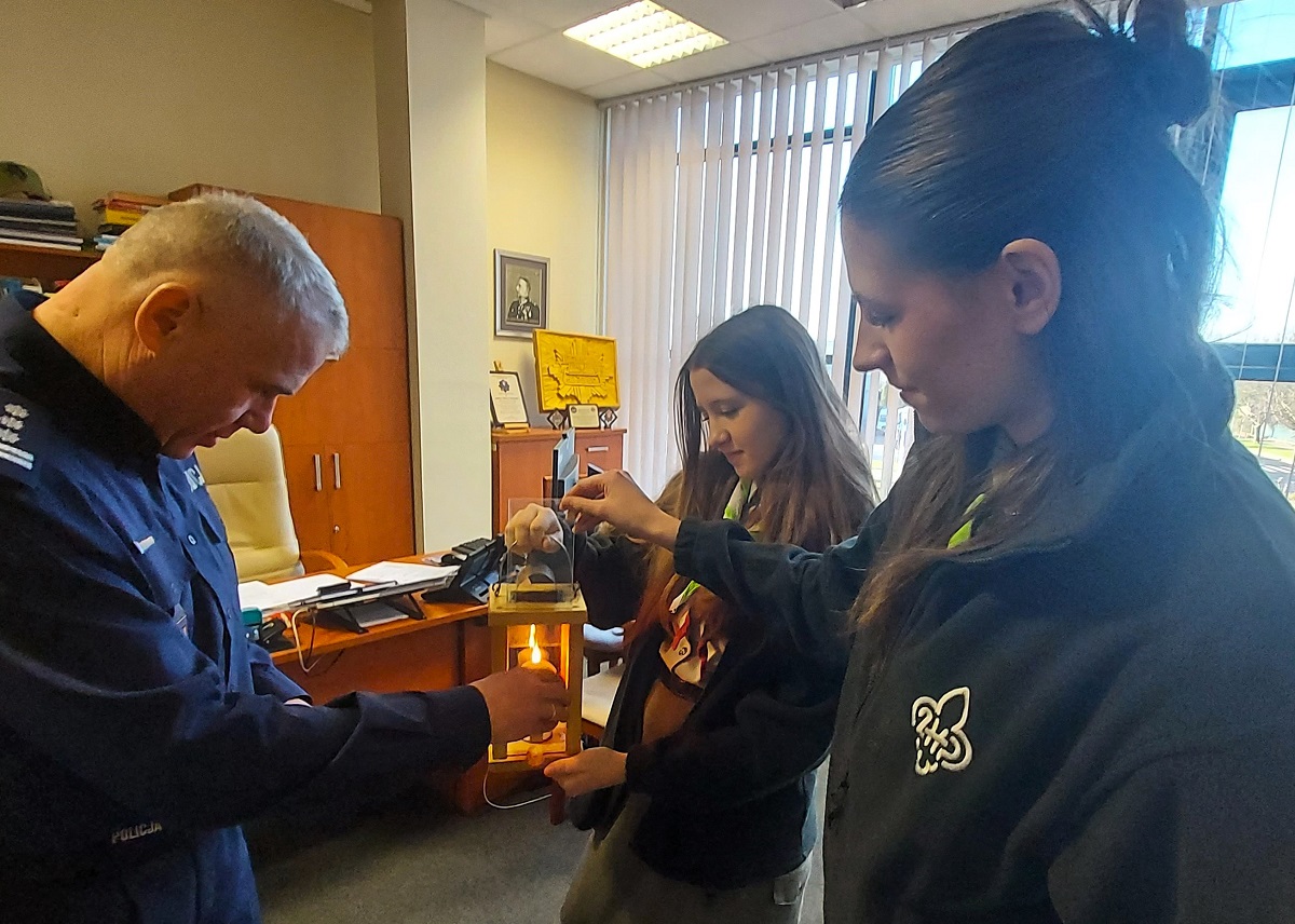 Policjanci otrzymali od harcerek Betlejemskie Światło Pokoju