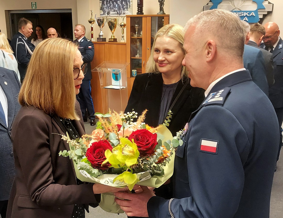 Inspektor Robert Krawczyk, w swoim wystąpieniu, podziękował władzom samorządowym, współpracującym instytucjom oraz zaprzyjaźnionym służbom mundurowym, za wsparcie i wkład w realizację zadań związanych z poprawą bezpieczeństwa na terenie powiatu zduńskowolskiego. Słowa podziękowania, skierował również do policjantów, pracowników Policji, a szczególnie do najbliższej rodziny, która przez te wszystkie lata wspierała go, wykazywała się cierpliwością i wyrozumiałością w pełnieniu codziennej służby.