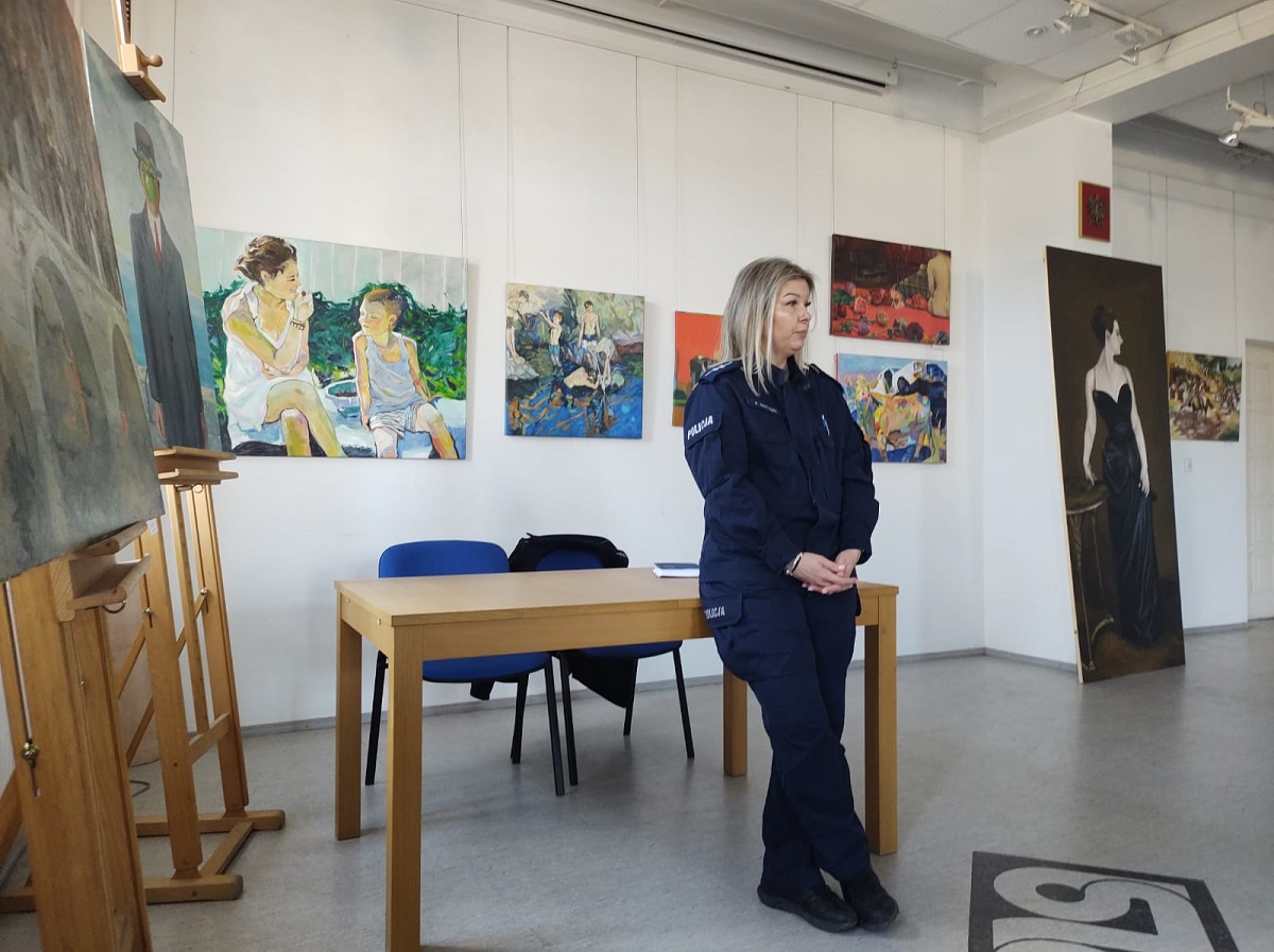 Policjantka odwiedziła uczniów Państwowego Liceum Sztuk Plastycznych im. K. Kobro w Zduńskiej Woli. Rozmawiano na temat szeroko pojętego bezpieczeństwa, zagrożeń związanych z hejtem. Przypomniano również zasady ruchu drogowego.